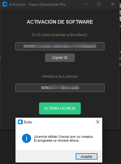 Una vez recibas tu licencia, solo introdúcela y haz click en "Activar Licencia", luego Acepta la confirmación de la misma y el programa se iniciará con normalidad.